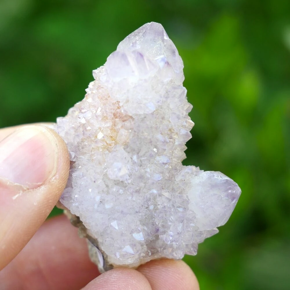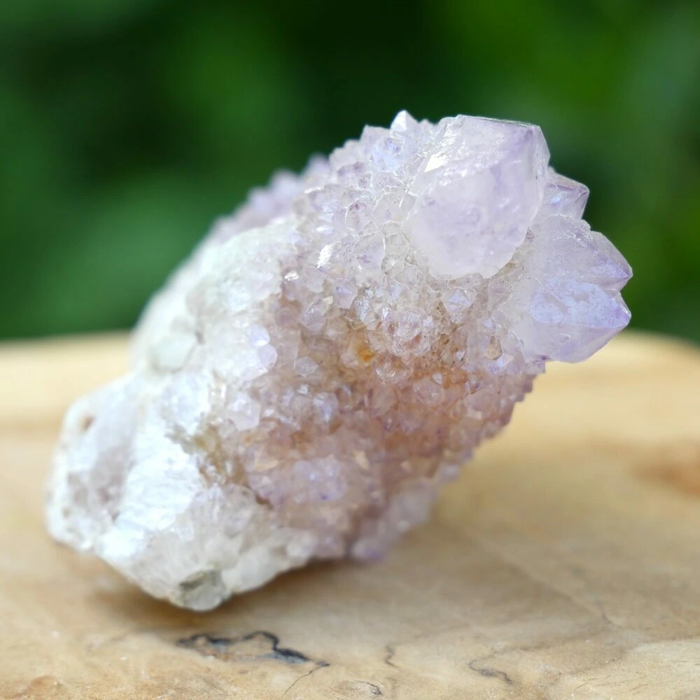 Spiritkwarts of cactusamethist is een paarse edelsteen en wordt alleen gevonden in Zuid-Afrika. Het is een bijzondere variant van amethist, die zijn naam dankt aan de vele kleine puntjes die op het hoofdkristal zijn gevormd. De meer spirituele naam ‘spiritkwarts’ komt grappig genoeg van de kleur die overeenkomt met roze spiritus, ‘spirit’ in het Engels. Echter wel een doeltreffende naam gezien de energie.