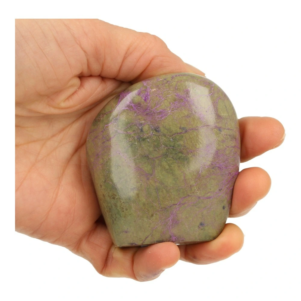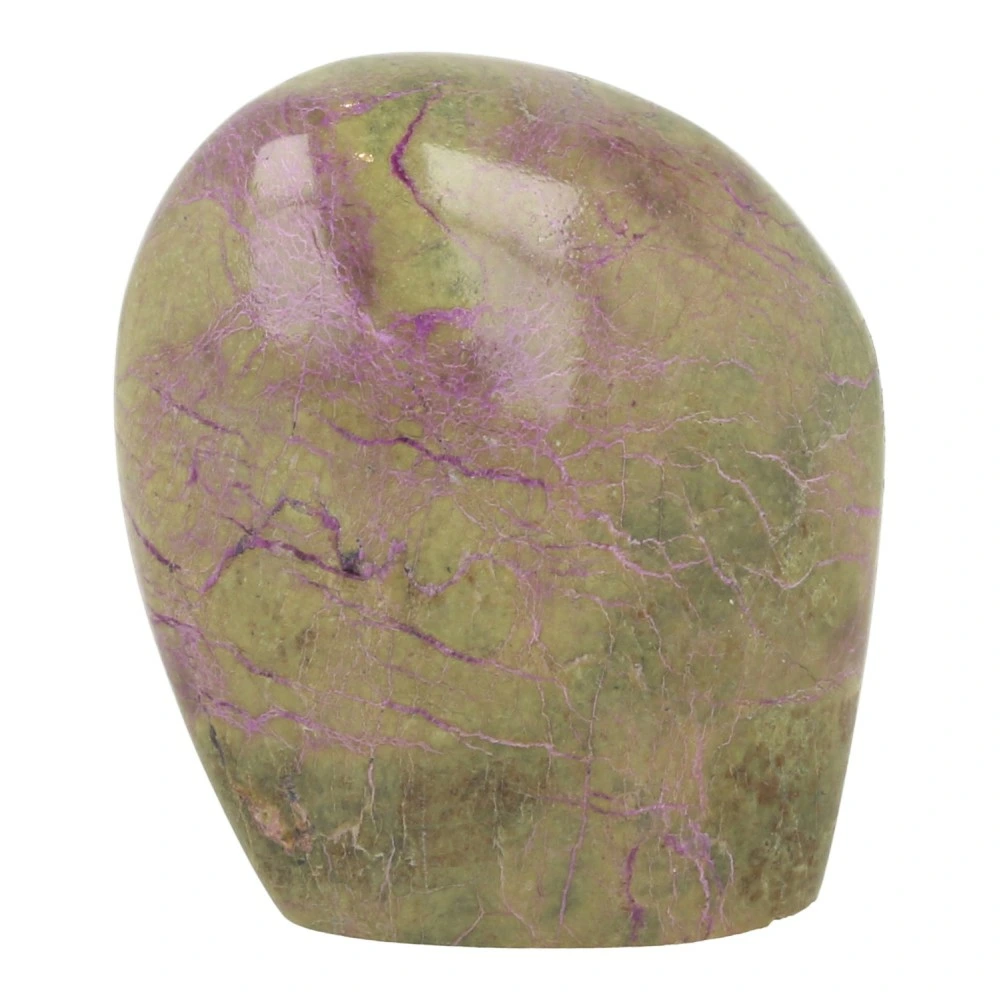 Fraaie paars met groene stichtiet gepolijst uit Barberton, Zuid-Afrika. Uniek stuk met fraaie kleur en vorm. Dit stuk stichtiet kan op mooi staan. De afmeting is ongeveer 67mm hoog, 60mm breed en 33mm diep. Je ontvangt het stuk stichtiet van de foto.