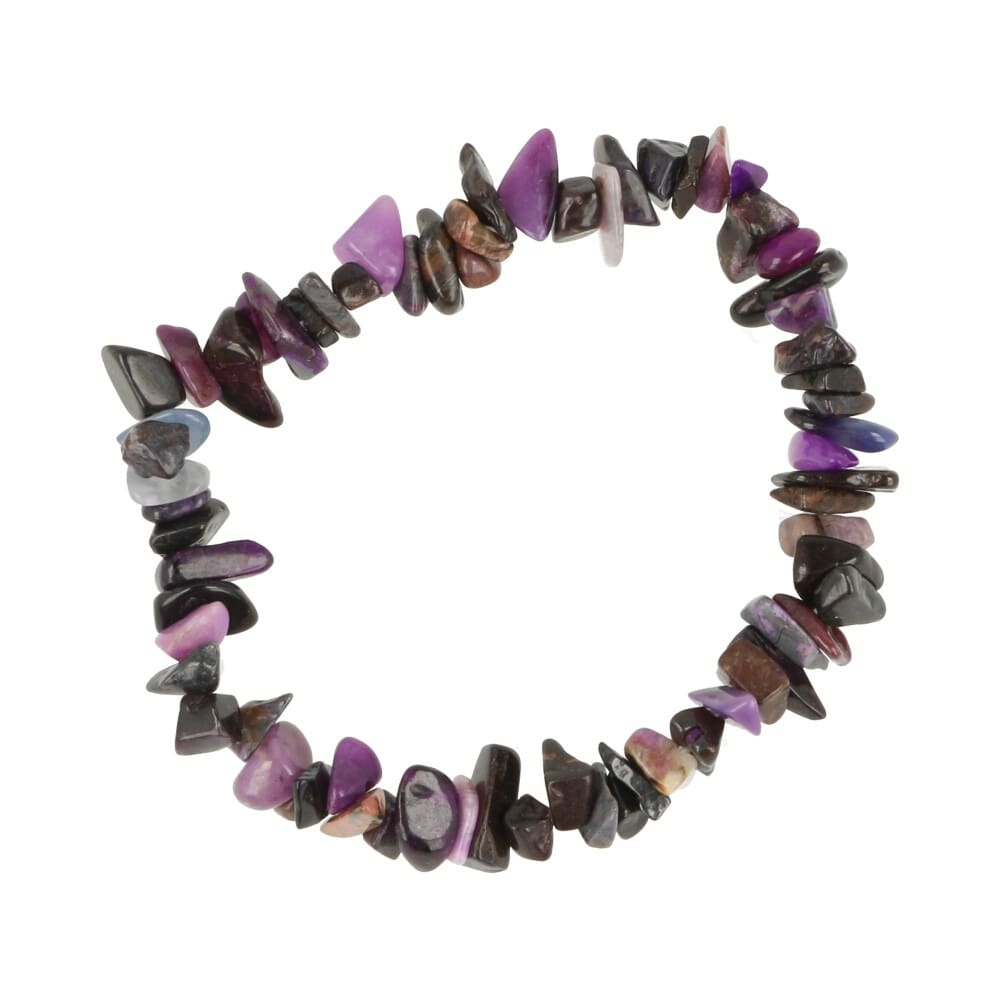 Diep roze-paars sugiliet armband split aan rekbaar koord. Deze sugiliet armband split is gemaakt van fijne gepolijste stukjes sugiliet en vooral geschikt voor de damespols of smallere herenpols.
