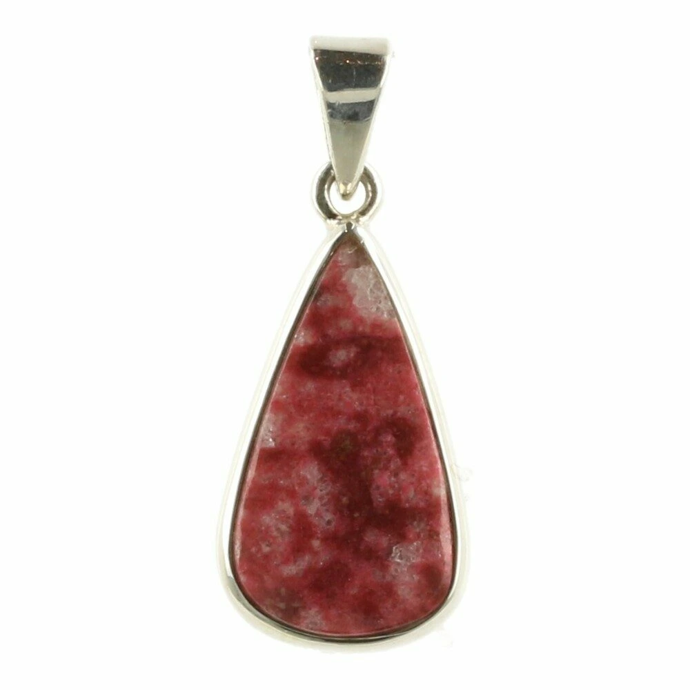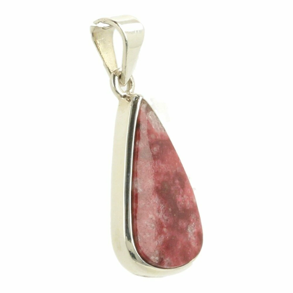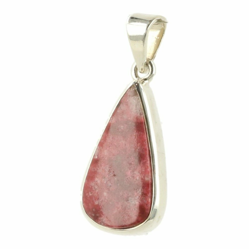 Fraaie rode thuliet hanger in zilver ‘nr4’ uit Noorwegen. Thuliet is een roodachtige steen, soms vermengd met kwarts. De mooi getekende thuliet is in juwelierskwaliteit 925 sterling zilver gezet. De afmeting van de thuliet steen in de hanger is ongeveer 12mm breed en 22mm hoog. Je ontvangt de thuliet hanger in zilver van de foto.