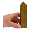 Fraaie gepolijste tijgeroog punt uit Prieska, Zuid-Afrika. Deze tijgeroog punt heeft de kenmerkende gouden glans van tijgeroog en is ongeveer 14,5cm hoog met een basis van 4 x 2,7 cm. Je ontvangt de punt van de foto.