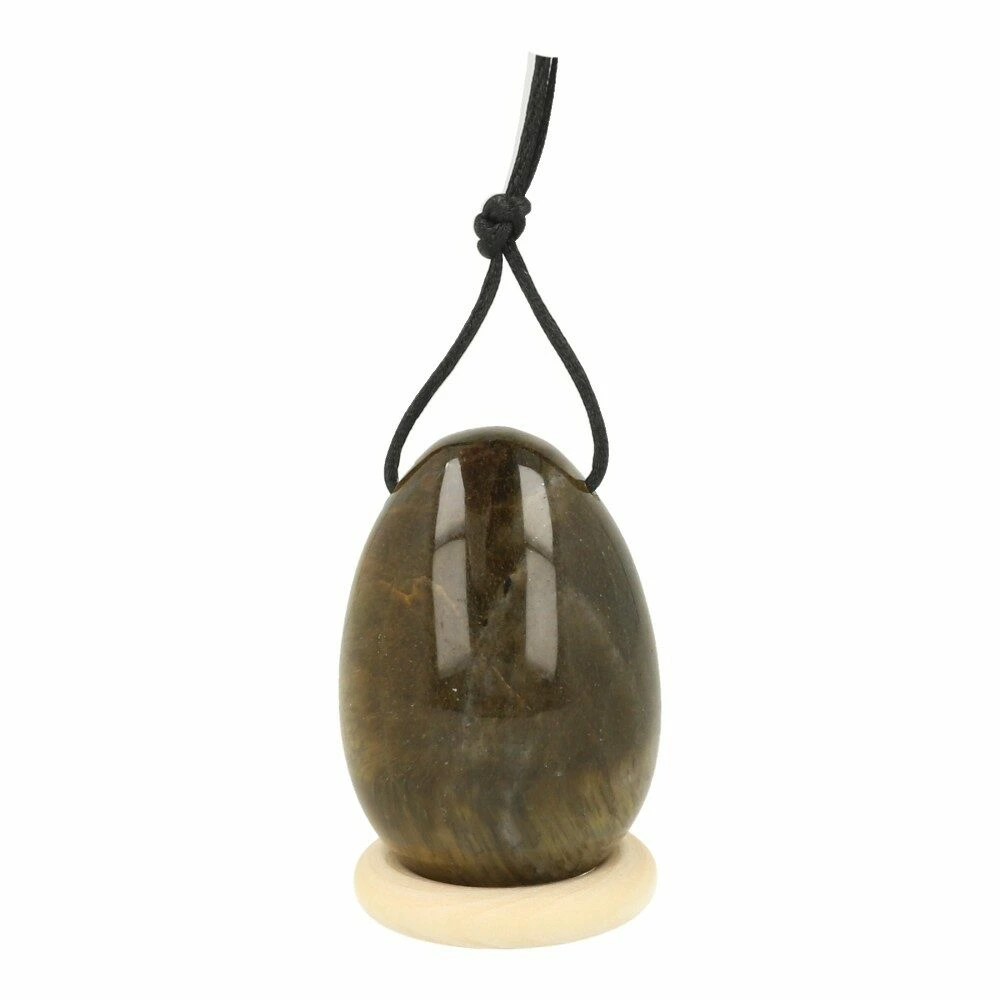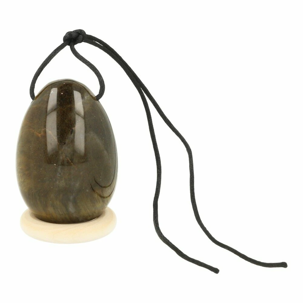 Tijgeroog yoni ei met een gaatje. De afmeting van dit tijgeroog yoni ei is 45mm hoog en 30mm diameter. Het gaatje dient om een touwtje door te doen als je dat prettig vindt. Je ontvangt een soortgelijk tijgeroog yoni ei als op de foto, inclusief houten ring. Lees meer over het gebruik van yoni eieren op de pagina yoni ei.