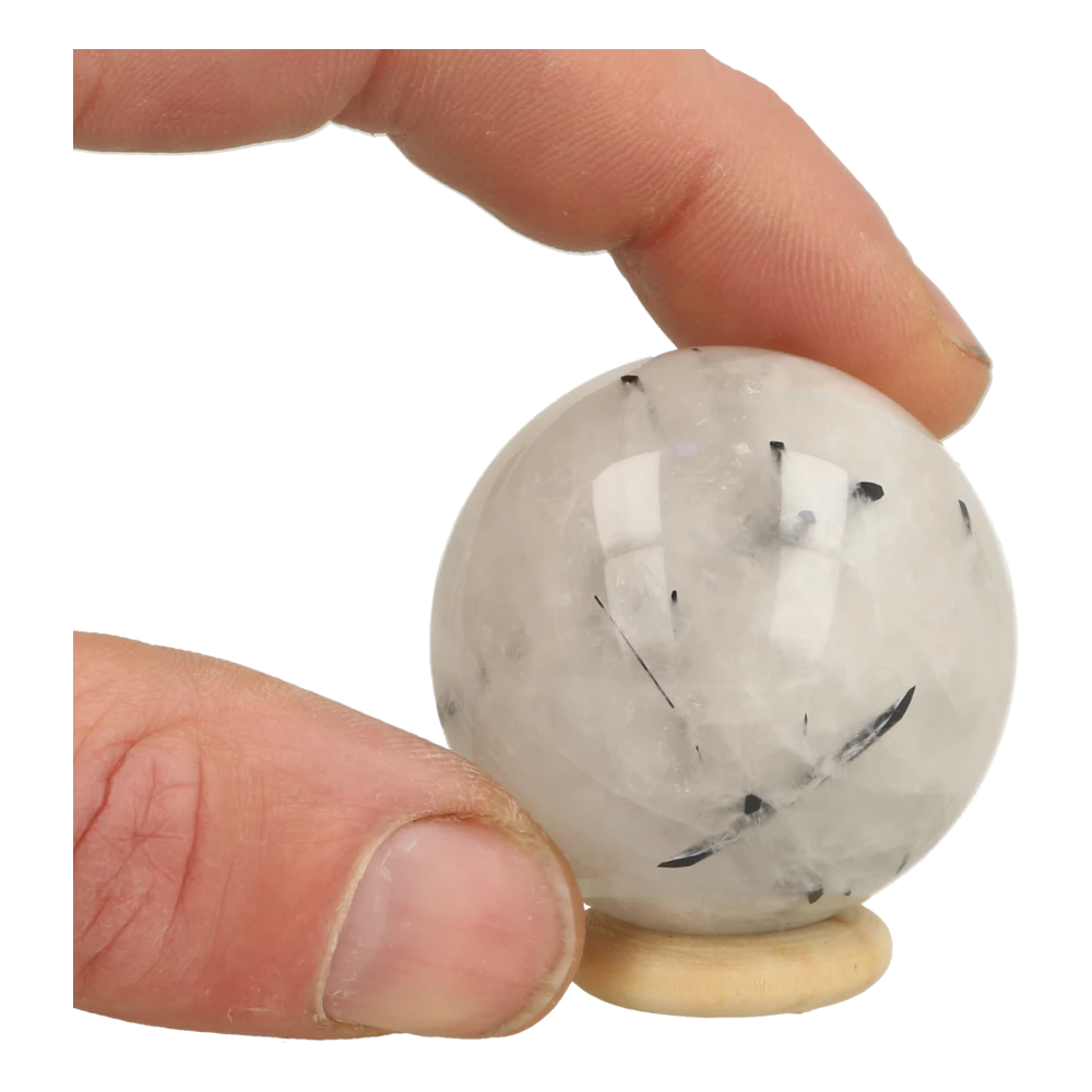 Fraaie toermalijnkwarts bol met een diameter van 44mm en houten ringetje uit China. Je ontvangt de toermalijnkwarts bol van de foto. Deze fraaie witte bergkristal met zwarte toermalijn kristallen erdoorheen zien we niet vaak. Mooi om te zien en met zachte helende energie. We hebben nog een aantal bollen toermalijnkwarts in deze maat op voorraad, dus zoek je net een andere? Laat het ons weten per app of email en we sturen je foto’s.