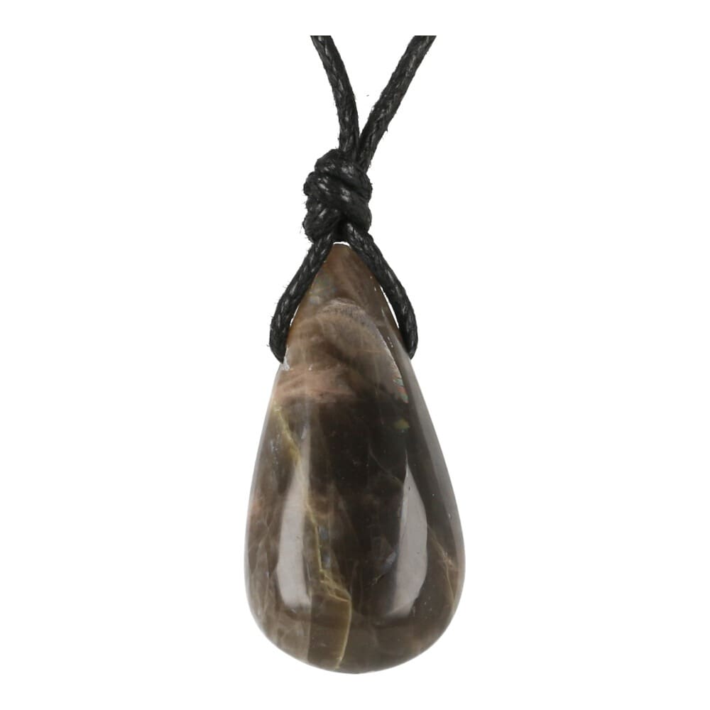 Mooie zwarte maansteen hanger doorboord met afmetingen van ca 3,5 cm hoog en 2 – 2,5cm breed. De kleurstelling varieert van heel donker naar grijs en bruin-tinten. Ieder zwarte maansteen hanger is anders, in kleur en de afmeting varieert iets. Je ontvangt een soortgelijk exemplaar als op de foto, inclusief zwart waxkoord.